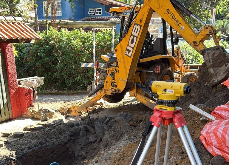 Oferecemos suporte técnico especializado para obras civis, garantindo que a execução no campo siga fielmente os projetos aprovados. Atuamos no controle e fiscalização da execução de obras, acompanhamento de etapas construtivas, cálculo de volumes de corte e aterro, e elaboração de perfis longitudinais e transversais. Nosso acompanhamento topográfico assegura precisão e qualidade em todas as fases, evitando desvios e otimizando os resultados finais dos empreendimentos.